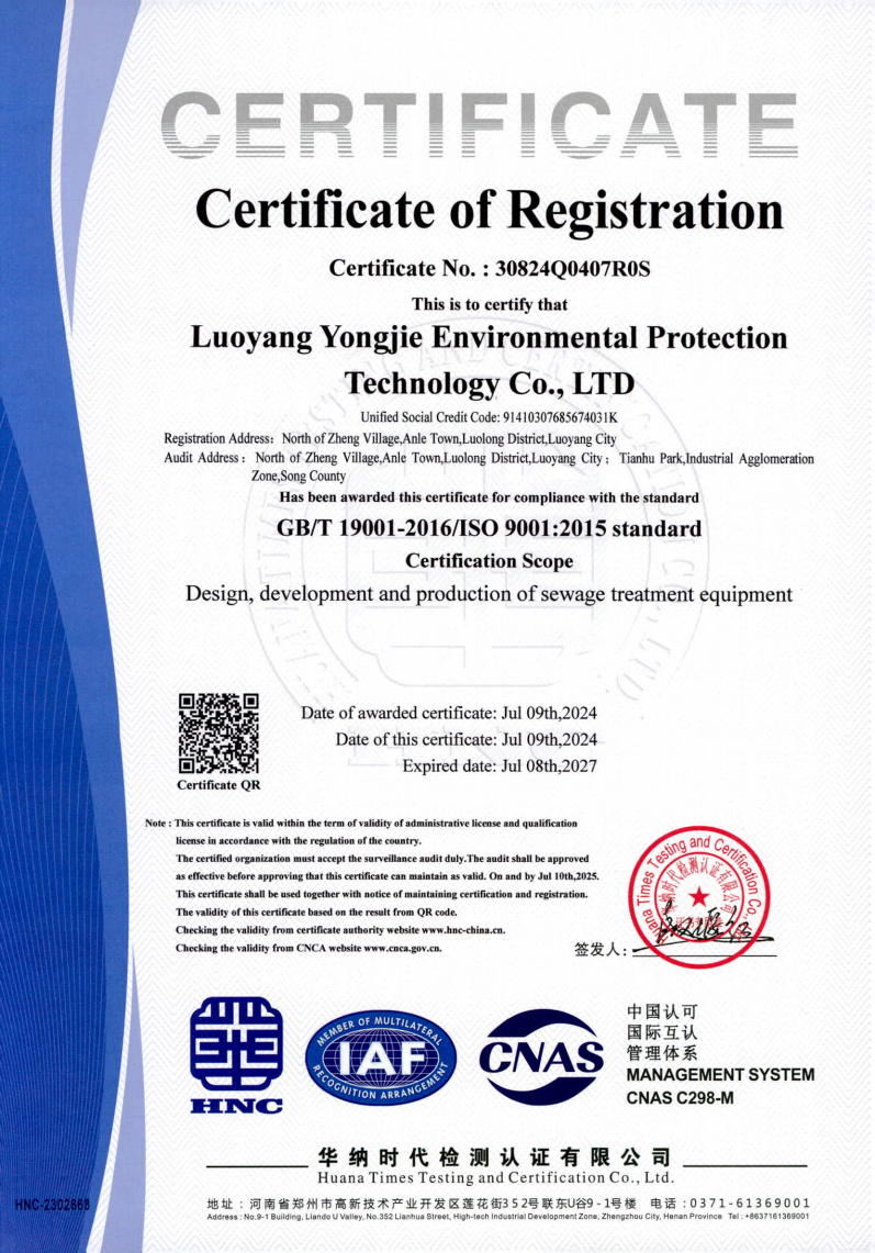 自从质量、环境及职业健康安全管理体系在公司运行以来,公司上下各部门高度重视,从生产、销售、办公、采购、环境、健康等各个方面,严格按照管理体系的要求来执行,公司各项管理工作更加合理、高 效。此次新一认证周期审核的顺利通过,是对公司多年来坚持管理体系运行工作的认可,我们将再接再厉,不断改进,在今后的公司运营中,凭借着质量、环境及职业健康安全管理体系,把永洁环保推向更高质量的发展。